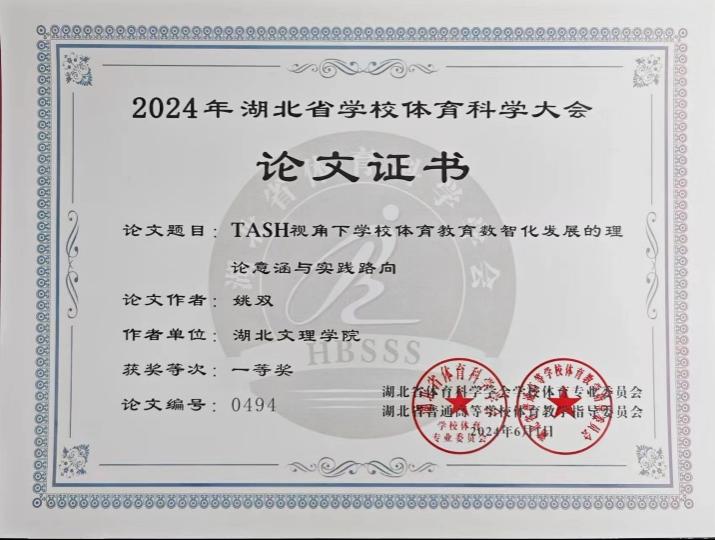 (天游线路测速登录中心 通讯员 张明月)2024年6月1日,湖北省学校体育科学大会在长江大学隆重举行,天游在读研究生姚双同学参加,并凭借其出色的论文《TASH视角下学校体育教育数智化发展的理论意涵与实践路向》荣获大会一等奖。