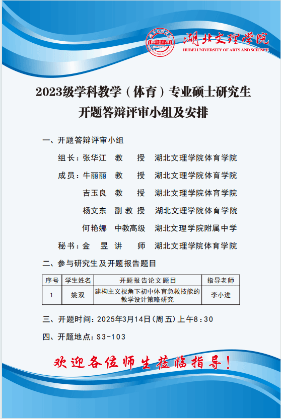 2023级学科教学(体育)专业硕士研究生开题答辩评审小组及安排